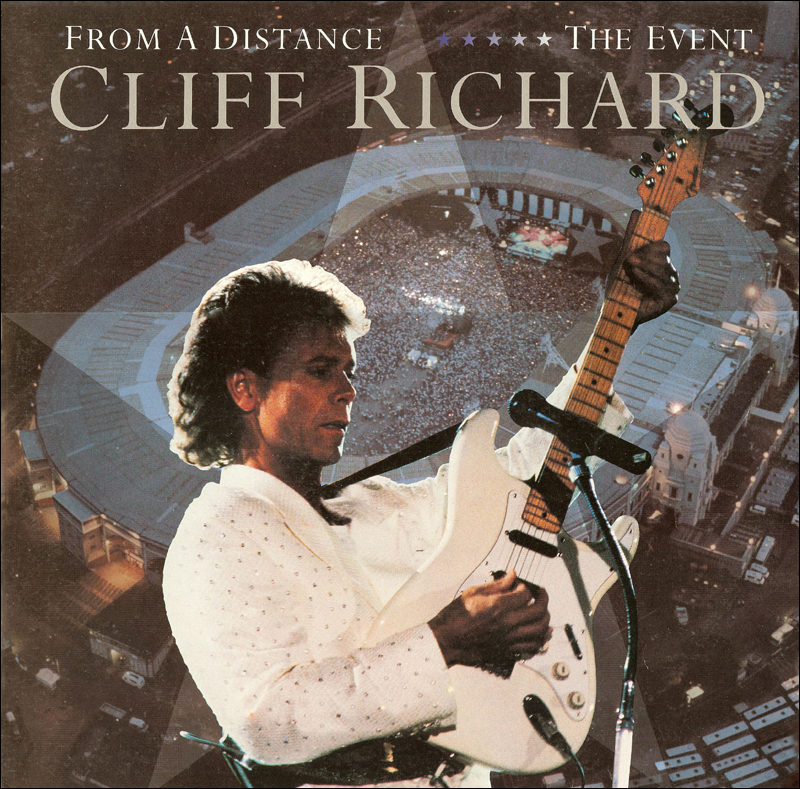 From A Distance (The Event) (Record 1 of a 2 LP Set) (Back Cover shown) EMI 795187-1 (Double LP) (1990) Cliff's Set From A Distance / Some People / We Don't Talk Anymore / Shake Rattle and Roll / Silhouettes / Move It / Summer Holiday / The Young Ones // In The Country / Good Golly Miss Molly / Fighter|Thief In The Night / Share A Dream / All The Time You Need / Saviour's Day * Manufactured by The EMI Music Group Australasia |