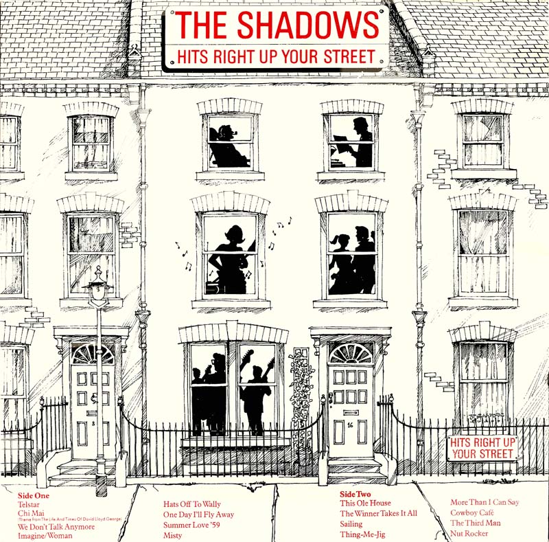 Hits Right Up Your Street EMI EMC 186 (1981) Telstar / Chi Mai / We Don't Talk Anymore / Imagine / Woman / Hats Off To Wally / One Day I'll Fly Away / Summer Love '59 / Misty // This Ole House / The Winner Takes It All / Sailing / Thing Me Jig / More Than I Can Say / Cowboy Cafe / The Third Man / Nut Rocker |