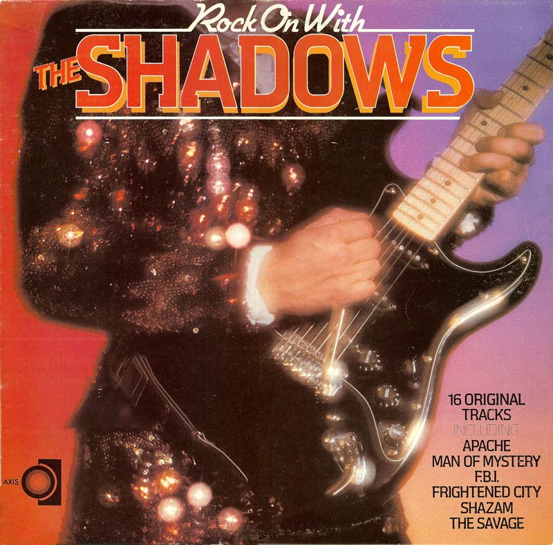 Rock On With The Shadows $ound Value AXIS 16 (1980) Apache / Kinda Cool / Shazam / Quartermasters Stores / The Savage / 36-24-36 / Sleepwalk / Man Of Mystery // FBI / Nivram / Shadoogie / Stand Up And Say That / The Rumble / Bo Diddley / Midnight / Frightened City ** Jerry Lordan is noted on Track 1 composer's credit as "Lorden" |